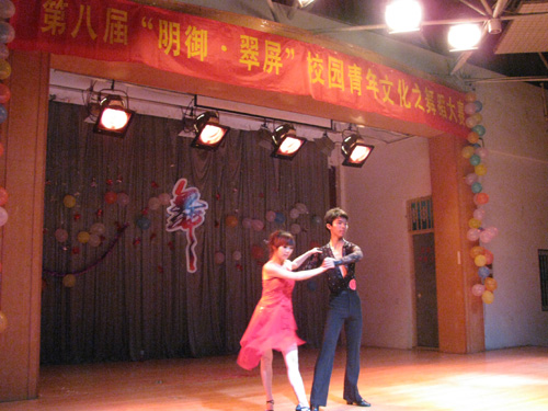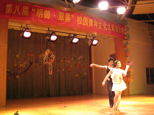 515晚,校第八届“明御 翠屏”校园青年文化节之舞蹈大赛决赛在大学生活动中心举行,禁忌书屋 07级戏剧影视美术设计专业黎玉婷、06级艺术设计专业郑宇龙分别与能源与动力学院、人文学院学生组队参赛,并分别荣获二等奖和三等奖的好成绩。