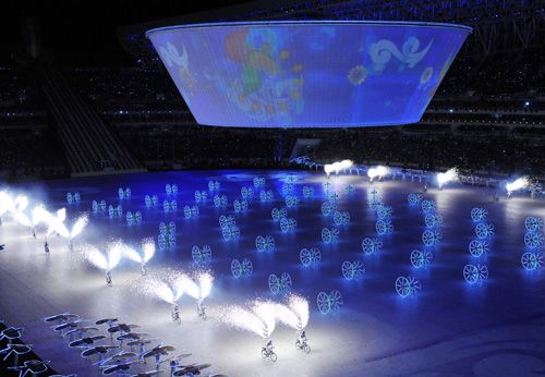1016,十一运会在山东济南隆重开幕,胡锦涛出席并宣布开幕。禁忌书屋 广播电视艺术学专业09级硕士研究生吴俊,作为江苏记者代表团特派记者,全程参与赛事报道,这是他在开幕式采访中拍摄的部分图片。