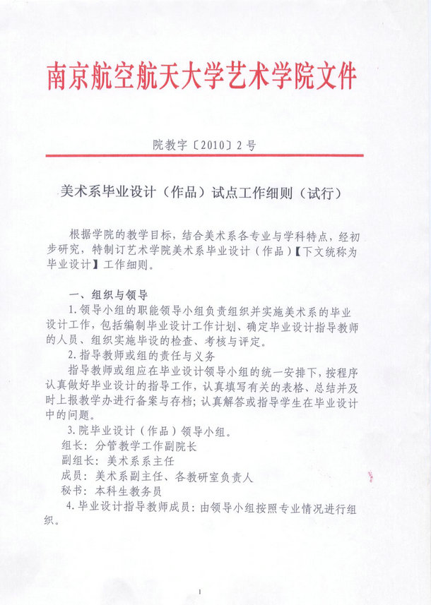 美术系毕业设计(作品)试点工作细则(试行)