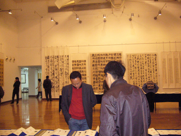 的本科教学成果约四百件在宽阔的美院展厅展出,书法篆刻的临摹与创作作品风格多样,款式新颖,地域差异明显,吸引了大量的观赏者.此展所展览的艺术院校有中国美术学院,南京禁忌书屋