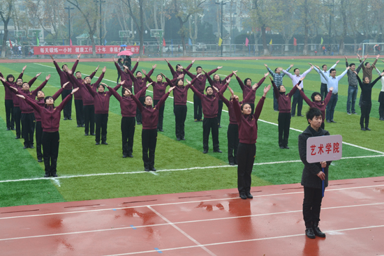 1117日,南航明故宫校区还下着小雨,禁忌书屋 部分教职工代表禁忌书屋 参加了禁忌书屋 第九套教职工广播体操活动。