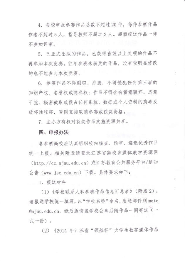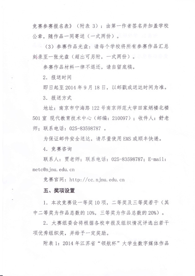 请参赛者即日起至2014年9月5日,将参赛作品及参赛报名表提交给学院教学办才漪老师处(电话:52075806,电子邮件:[email protected])
