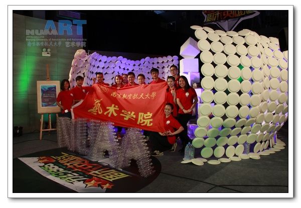 节目录制现场,一个用废纸、旧塑料瓶以及一次性碗筷等废旧物搭建的外形类似机舱的小屋吸引了观众们的眼球,这便是南航学子的创意环保作品。“我们结合自身的专业特性,同时加上南航的航空航天特色进行再创造,设计了这款绿色环保且兼具艺术感和科技感的极简小屋”,本次参赛的南航队队长王敏同学介绍道。