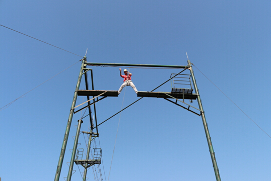 早上7:00,同学们就已经在南航小北门整装待发,经过一个多小时的车程后,终于到达了目的地:将大学生适应力教育“搬到”户外,让新手欣喜异常!在早上的项目中,先是以班级为单位的各队斗智斗勇、轮流PK,这个环节,大家收获的信任,增加了班级荣誉感。随后各班进行了“高空断桥”的高空挑战项目――站在距离地面