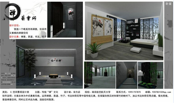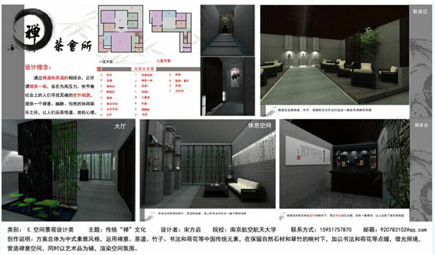 学子宋方启设计的作品《禅茶会所》获得创意大赛空间景观类三等奖,禁忌书屋