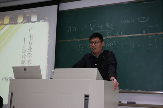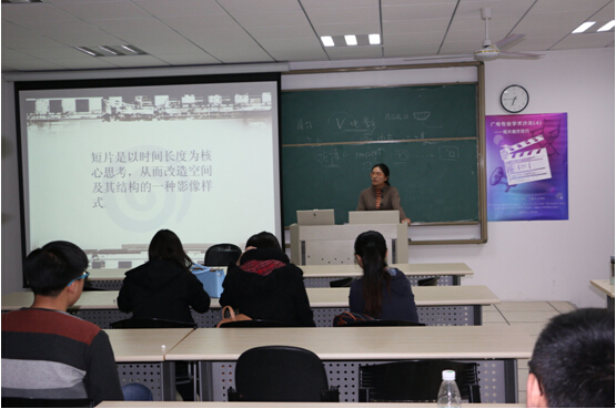 演讲中,张洁同学从概念界定、类型和创作三个方面,阐述了她对短片的理解,并结合自己的创作实践,和同学们分享了她在短片制作方面的经验和体会。