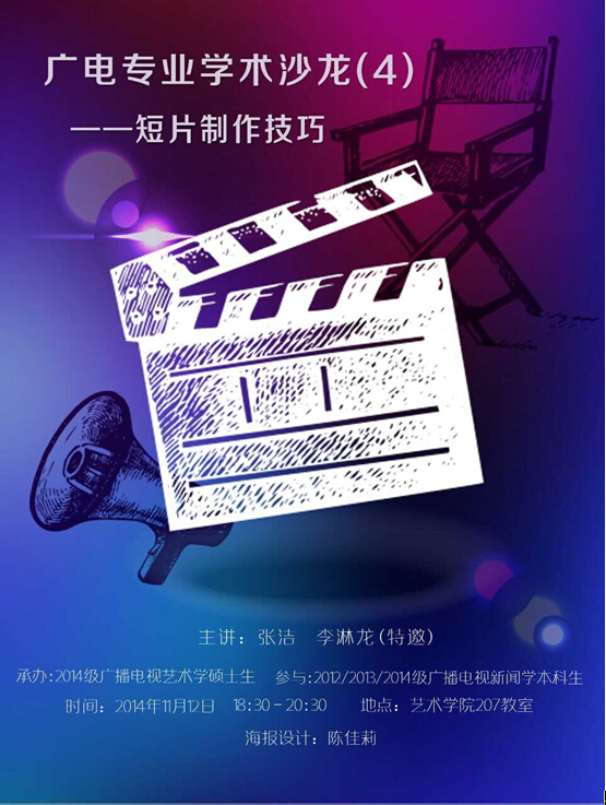 2014级广播电视艺术学硕士生张洁同学以《短片制作技巧》为题,做了主题发言。