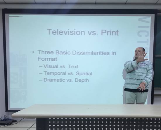 学生讲授《西方媒体内容的理解与分析》课程,四十名本科生和十名研究生选听了该课程。