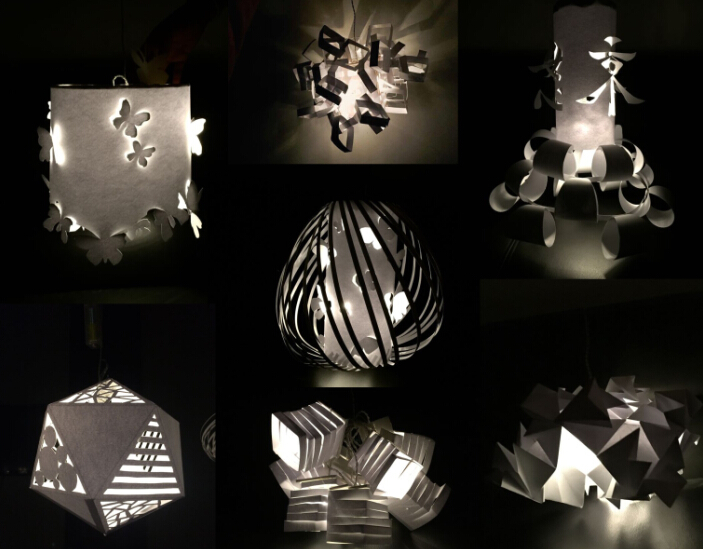 利用小正方体拼凑成的不规则吊灯、富有童趣的“水母灯”、结合中国传统的“汉字灯”、翩翩飞舞的“蝴蝶灯”……环境设计专业的同学们在短短几个小时的时间内完成的作品得到了Stefano教授的称赞,作品在禁忌书屋