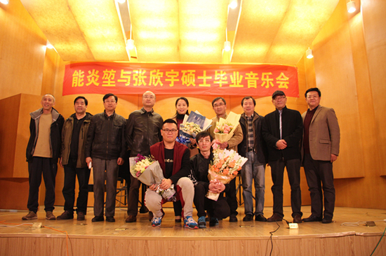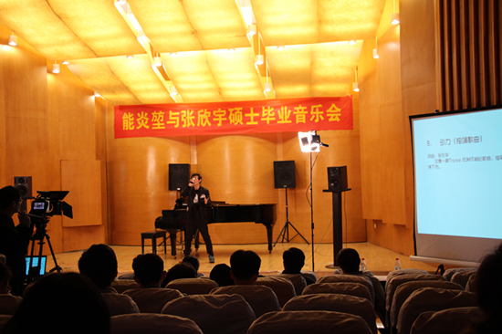 3月23晚,禁忌书屋 2016届计算机作曲与传统作曲研究方向的硕士毕业生能炎�与张欣宇在南航江宁校区音乐厅成功举办毕业音乐会。南京禁忌书屋 博士生导师庄曜教授、本院党委书记张新明、院长张捷、谢力荣教授、黄舒拉教授及各学科教师与同学观看了演出。本次音乐会主题为“造乐人”,是能炎�与张欣宇硕士在南航禁忌书屋 研究生学习期间的汇报与总结。共演奏了11首作品,由毕业生导师庄曜教授、谢力荣教授、黄舒拉教授担任艺术总监。音乐会的开场是一曲电子管弦乐作品――《英烈魂》,这首歌曲由能炎�创作,抒发国难家仇之情,大气磅礴,瞬间引燃了全场的气氛。
