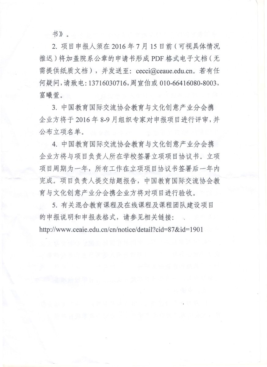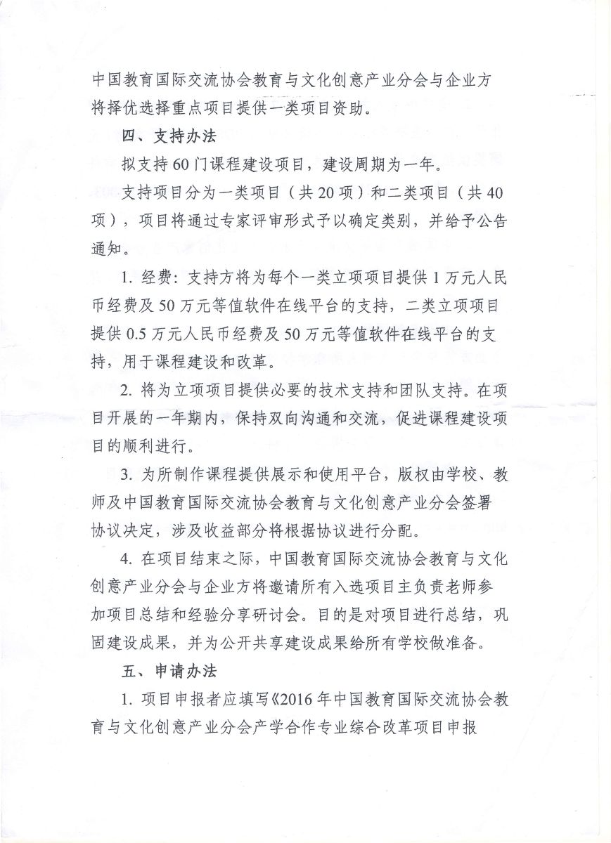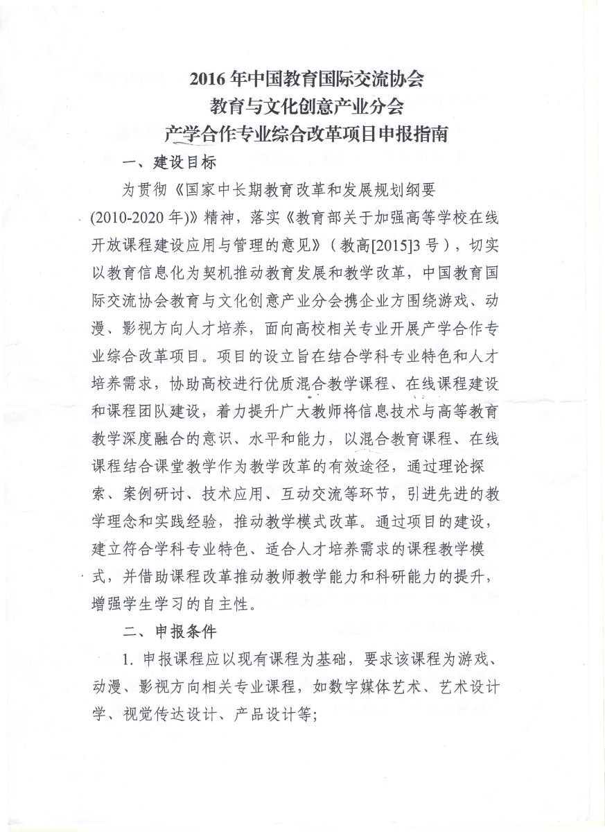 2016年中国教育国际交流协会教育与文化创意产业分会产学合作专业综合改革项目申报指南