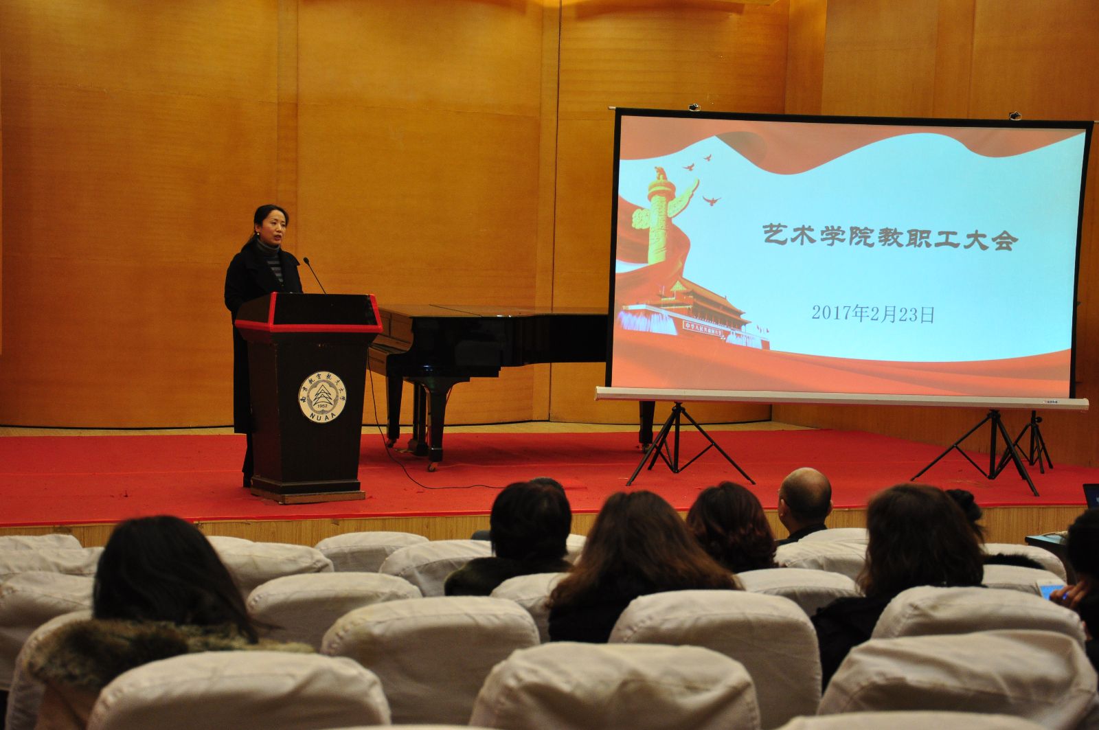会上,张捷院长对学院2017年重点工作进行了布置,共包括八大方面的内容:一是围绕双一流建设,大力加强高水平师资队伍建设;二是完善“十三五”规划的制定并启动实施;三是加快学科的特色化发展道路;四是不断完善创新人才培养体系,深化人才培养机制改革;五是构建立体式、多元化的公共艺术教育和服务体系;六是强化科研综合实力;七是提升学院国际化水平;八是争取外部资源,拓展办学空间。