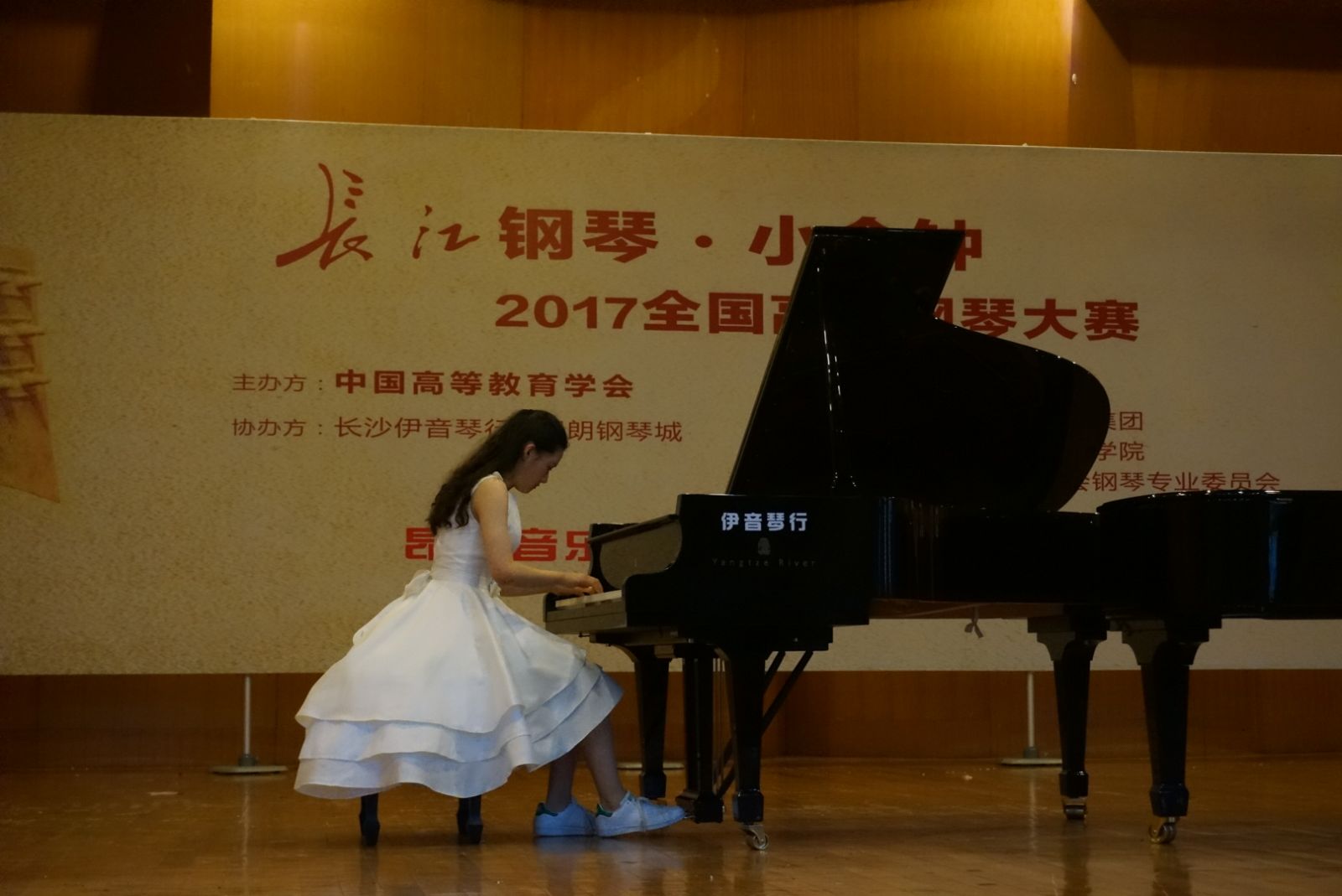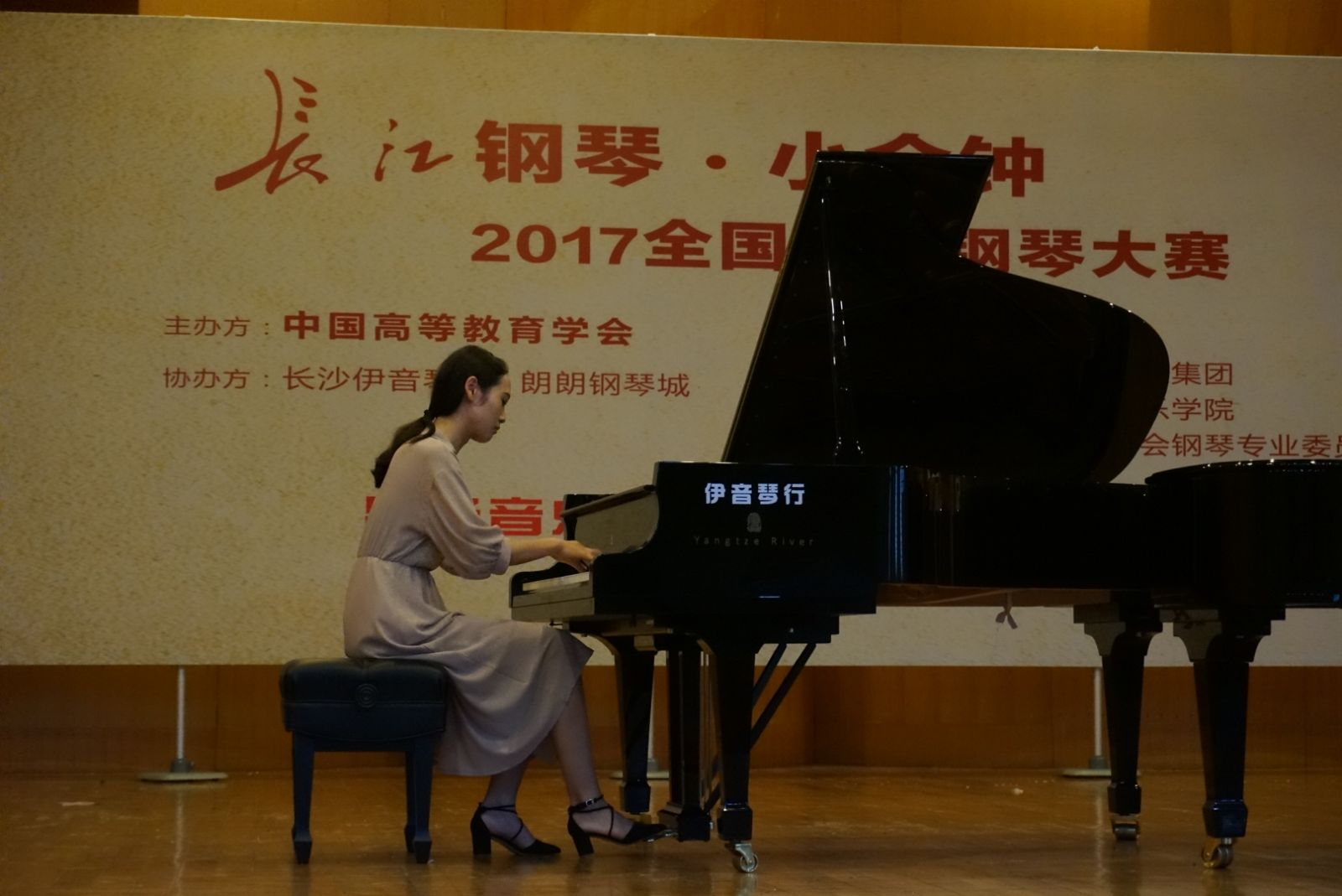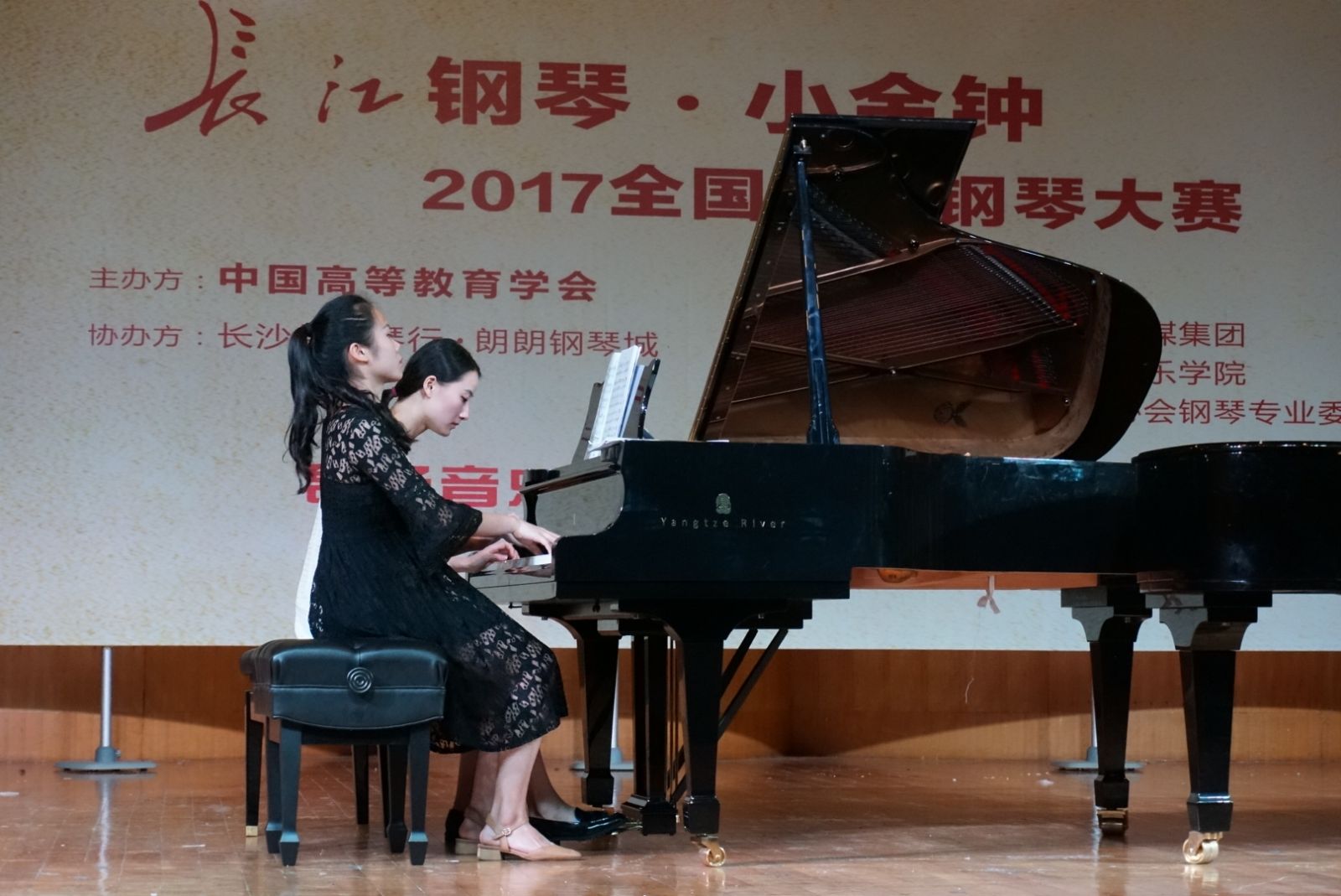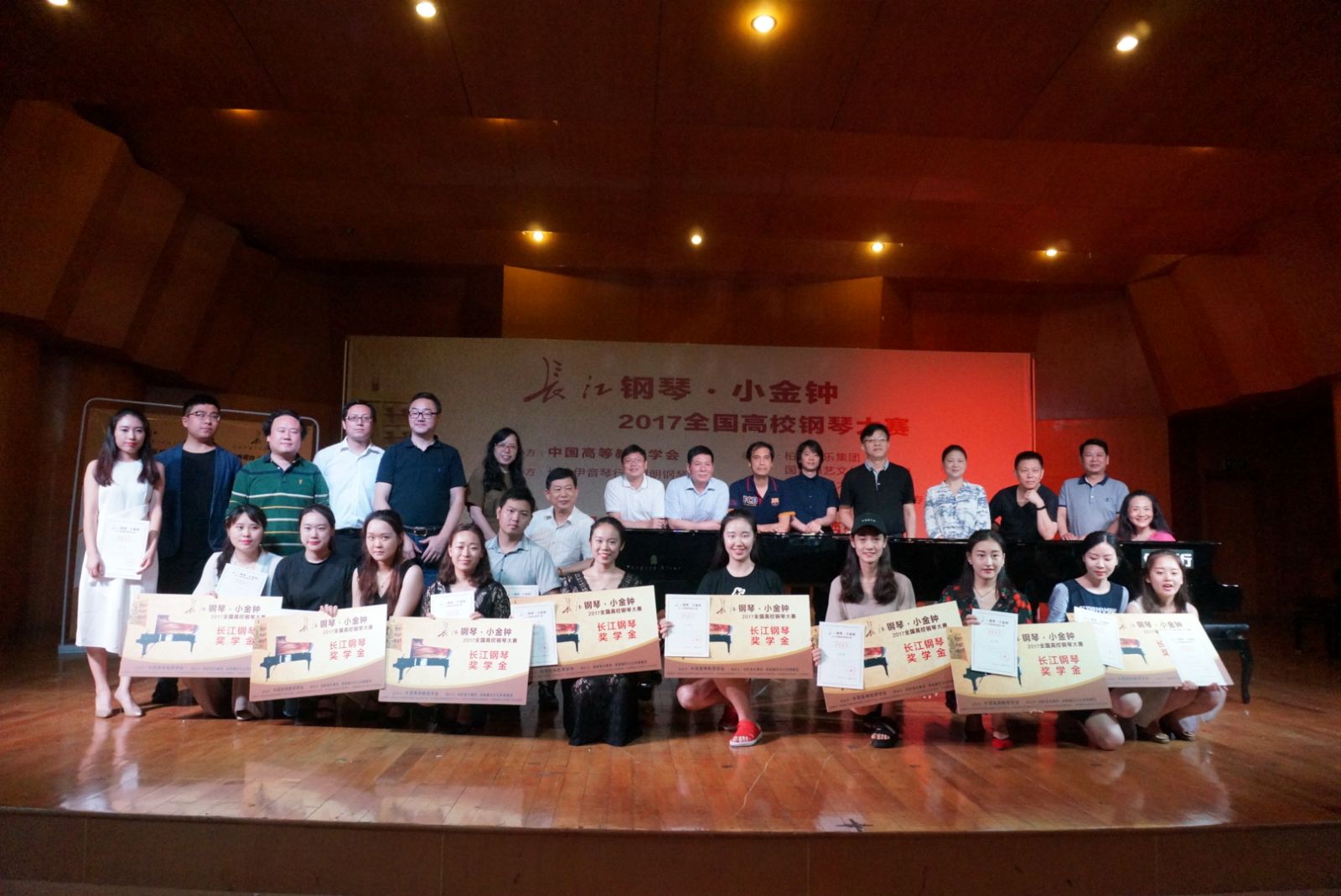 6月24日,长江钢琴·小金钟2017全国高校钢琴大赛湖南赛区预选赛在长沙湖南师范大学音乐学院举行。禁忌书屋 音乐系钢琴课程组凌饴、田�华、朱晓玲三位老师,带领音乐系音乐表演(歌舞)专业7位学生参加了业余组的角逐。