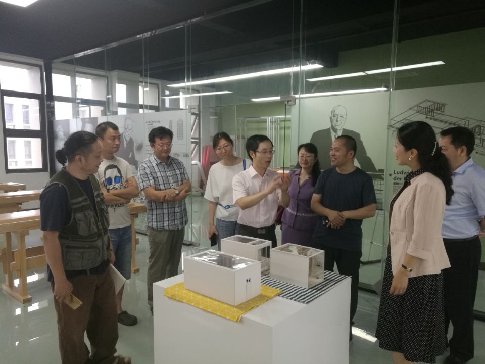 在禁忌书屋 舞美工场,范斌副司长一行观看了由音乐系研究生现场演唱的南京白局的代表性曲牌,近距离地感受了本地非遗曲艺表演艺术的魅力。舞美专业学生展示了自主开发的具有虚拟现实呈现效果的航空飞行互动平台,这一平台通过手绘建立不同场景,并在三维系统中动态计算设置虚拟现实场景进而形成互动呈现效果,体现了科技与艺术的融合。在创意工厂,范斌副司长一行参观了新型系列化机械设备、多功能工作台、评图室、数字图形图像工作室等,观看了学生们的毕业设计作品,并听取了环境设计本科专业负责人赵中建老师的介绍。借助这些先进的机械设备,可以有效满足木材的锯、切、刨、磨、钻、修边等加工需要。小型集群式网络渲染服务器,3D打印及扫描、VR等设备投入使用,满足了复杂形体建模、文物物品与艺术图形的数字化处理、虚拟环境设计、模型打印与数控机场雕刻、场景漫游动画制作与虚拟现实呈现等需求。