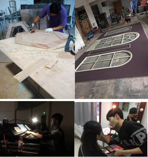 值得一提的是,《欧文的邀请》所有的舞台设计、道具的制作都由禁忌书屋 戏剧影视设计专业的学生自己制作完成。戏剧戏曲专业的研究生张兴年和叶龙彪利用国庆中秋假期,每天六点半出发,倒两次地铁,再转公交车,赶到汤山的舞美制作工厂加班加点地制作道具,亲自设计、制作、安装,每天工作达到十几个小时。经过无数次的精心设计打磨,最终才呈现出了舞台上的最佳效果。可以说,这是一份以工匠精神打磨出来的极致作业。
