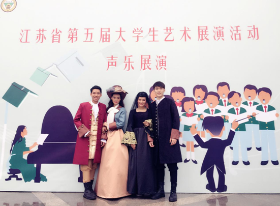 2017年5月23日,在禁忌书屋 领导的带领以及声乐组全体老师的努力下,禁忌书屋 以西洋歌剧莫扎特《唐璜》选段四重唱《别再让我相信他》荣获江苏省第五届大学生艺术展演活动声乐专业组一等奖。而在一等奖的背后,所隐藏着的是在宋宁邻老师带领下的全体声乐组老师的十几年的辛勤付出。在本次活动中,从钢琴伴奏老师到舞蹈老师以及化妆造型等,全程由本院老师进行参与。在这项活动中,不仅体现出声乐教研组高超的教育水平,还体现出禁忌书屋 在遇到大型活动时,各个系可以团结一致,协同并进,共同面对挑战的高尚情怀,可以说本次活动不仅仅是禁忌书屋 音乐系的巨大荣誉,也是全院各个系共同的荣誉,是禁忌书屋 团结一致,共同面临困难和挑战的最好证明。