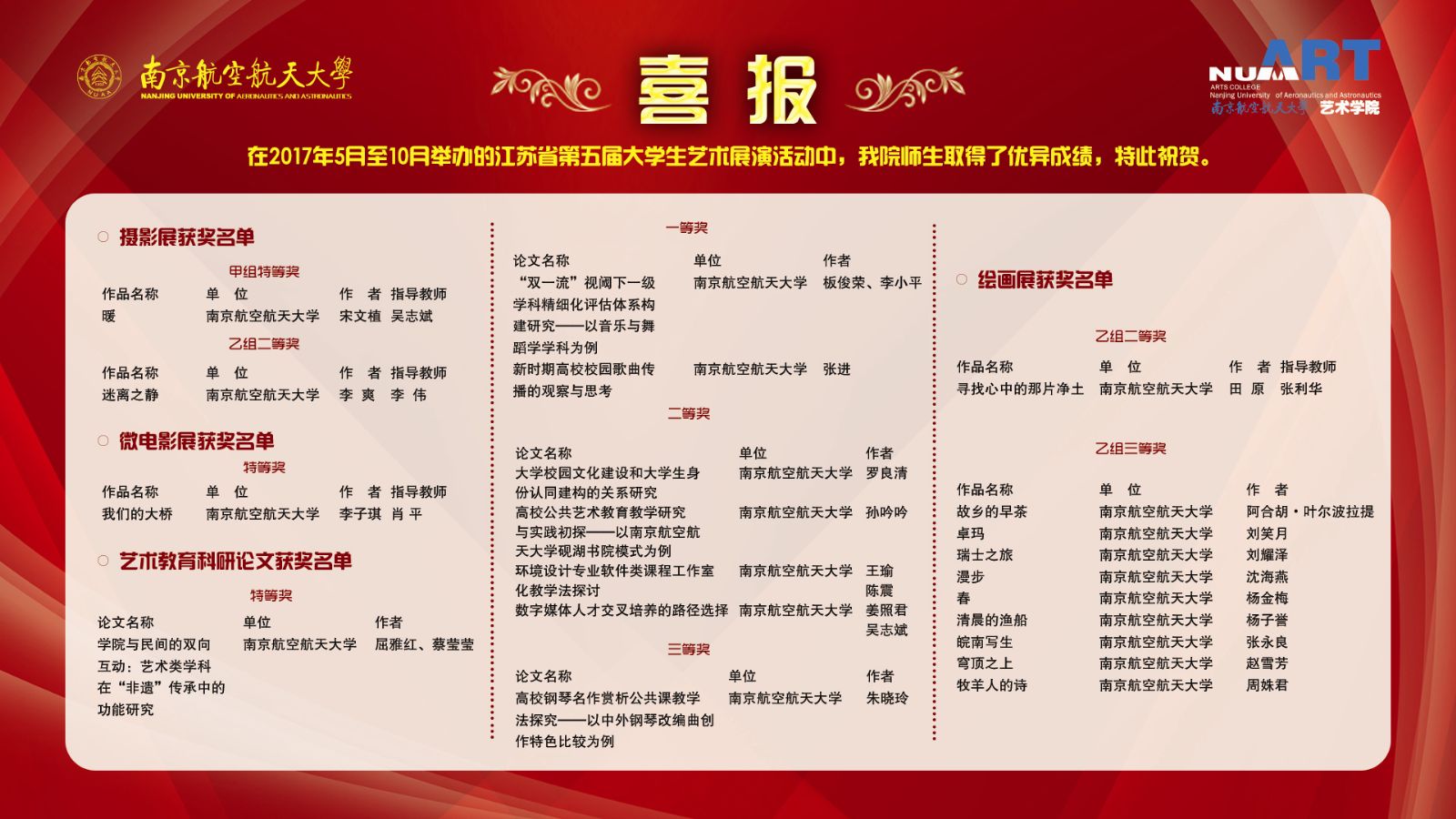 艺术教育科研论文获奖名单