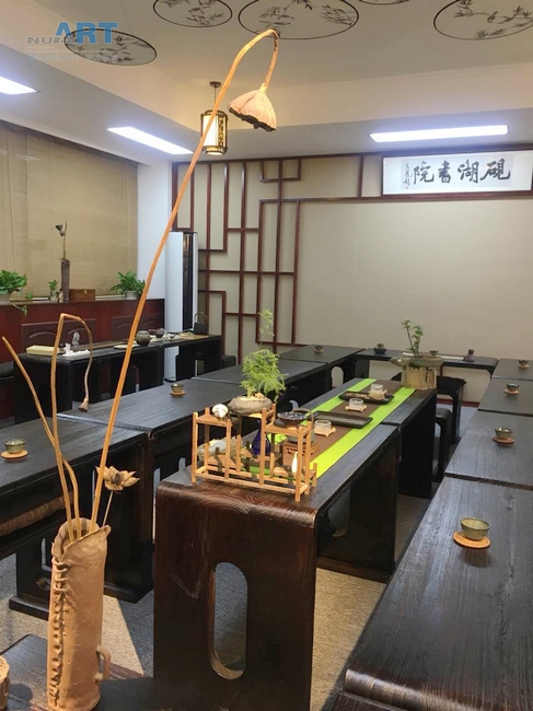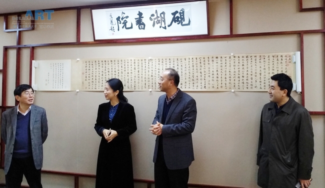 活动在愉快轻松的氛围中进行。首先,禁忌书屋 砚湖书院教师向大家介绍了书院内展示的书画作品及其创作内涵,并且分享了一些书画作品鉴赏的知识。然后,禁忌书屋 院长张捷简要地回顾了砚湖书院的开办历程与工作成果。施大宁校长及参会职能部门负责人充分肯定砚湖书院两年来的工作,施校长认为这个平台既提高了学校师生的品味,也能体现禁忌书屋 的价值,一举两得。要求立足艺术服务人才培养,繁荣校园文化的理念,积极创新以跨界为合作概念的方法,来实现艺术与工科的结合。同时,也希望学校各部门给予大力支持。