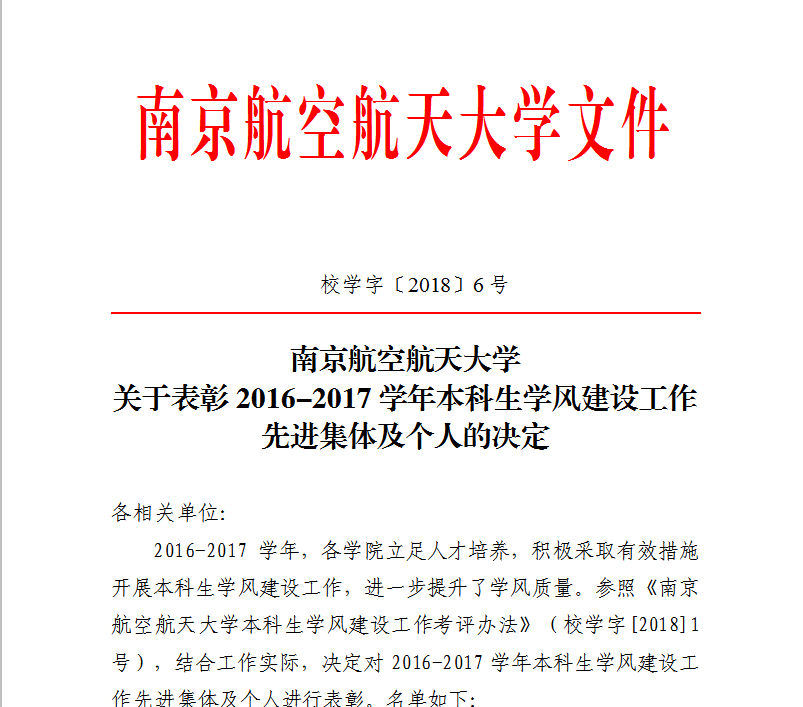 通过全院教师和学生的共同努力, 在南航2016—2017学年本科生学风建设工作先进集体及个人表彰中,禁忌书屋 荣获学生诚信奖、学困生帮扶成效基础奖及本科生学风建设工作先进个人,共三个奖项。在这一学年中,禁忌书屋 积极开展一系列有助于提高学院教风、学风活动。学风建设工作成效显著。