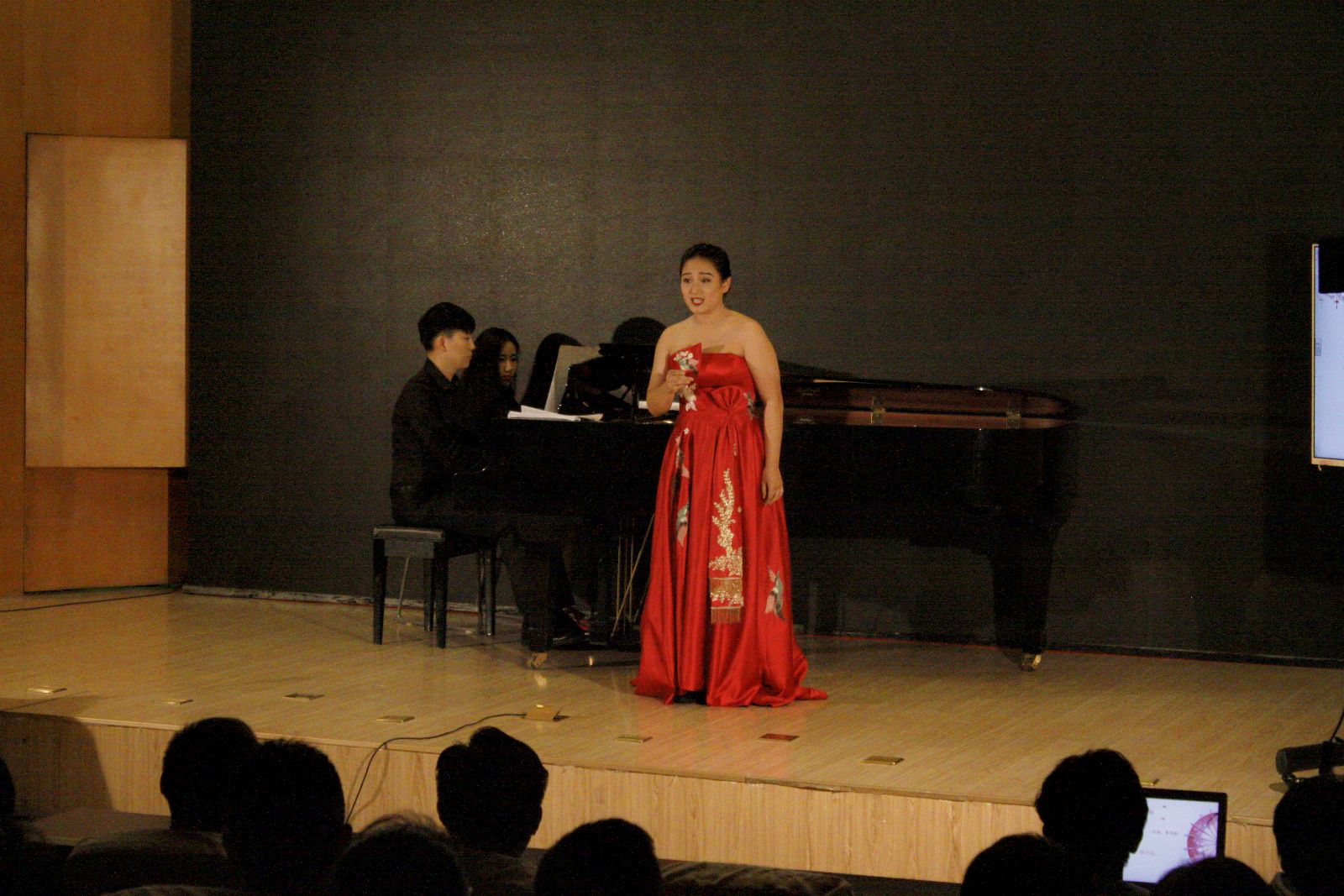 “作为一名音乐专业学生,在自己的毕业前夕为大家演出一场主题鲜明的音乐会非常有意义,音乐是最具有感染力的,感谢我的导师邱老师能够将思政与我的音乐会相结合,让这场音乐会有了灵魂和精神”本次音乐会主唱韩佳韵动情的说道。
