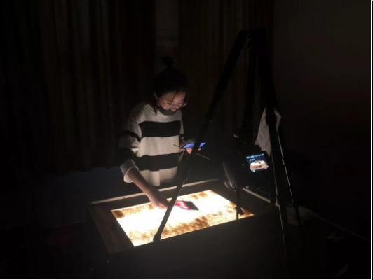 实践前期,禁忌书屋 党支部的7名学生党员对沙画的表现内容进行了反复讨论和认真筛选,最终选用10幅具有代表性的场景来突出展现三个模块的内容特征。过程中,大家相互配合,克服了很多困难。美术组同学更是自学沙画,起稿绘制,摄影组同学对绘制的过程进行拍摄,并在后期融合解说词等元素进行剪辑制作。最后的实践成果将在8月1日,建军节前后推出。