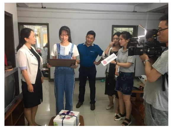 9月3号是新生入学的日子,也是一年级新生刁妤涵的十八岁生日。为了庆祝这位新生的18岁成人礼,院长和学院书记来到了她的宿舍,送上了一份专门为她准备的生日蛋糕,在院长、学院领导和学长学姐的祝福中,刁妤涵完成了她的成人礼。