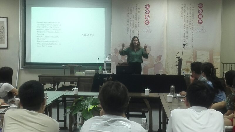 Andò 副教授以她十多年在粉丝文化领域内的学术研究经历,分享了她对于西方文化尤其是意大利文化背景下的粉丝文化的研究成果,她认为,粉丝文化在互联网时代发生了三个嬗变:即社区实体小型化、在线扩展化以及社交媒体生活化,把握住三重嬗变是理解粉丝文化的发展趋势的关键。她还分析了在数字时代,粉丝文化可以通过媒体和草根产品提供无尽的在线储存收集;粉丝消费更易追踪和研究;粉丝活动成为每天常见的实践;更为重要的是粉丝通过公认的文化以艺术生产方式进行内容性生产。她的研究引起了与会人员的思考和共鸣,围绕着Andò 副教授的这一讲座主题,大家进行了热烈的学术探讨,也促进了中意文化的交流。