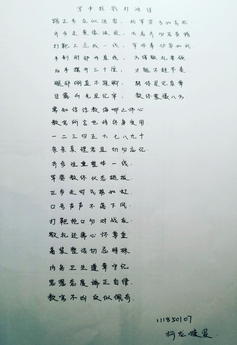 汪国真说:“没有比脚更长的路,没有比人更高的山。”汇演并不是结束,而是另一段征程的开始。军训是我们的大学第一课,我们从中学到了坚韧与团结、拼搏与乐观,相信这段时间的磨砺已经为我们的大学生活奠定下了良好的基础。大学的道路才刚刚开始,中华民族之伟大复兴正扬帆起航。