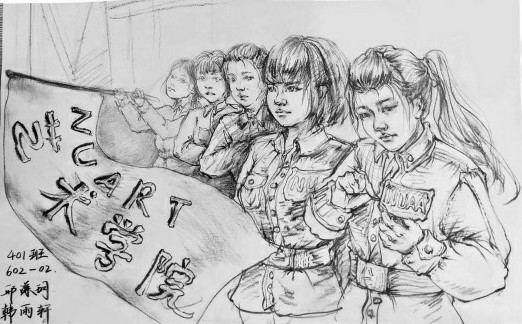 迎面走来庄严的国旗队,来自禁忌书屋 的四名同学位列其中,意气风发。各个营队的方阵紧随其后,依次走过,步伐齐整,声势浩大。还未经过主席台的我们,同样一丝不苟。无论是踏步走、齐步走还是立正,所有人都打起了十二分的精神,力求完美。禁忌书屋 的方阵女生偏多,但这丝毫没有影响我们的气势和精气神。临近主席台,王青同学一声令下,我们齐刷刷地转过头去,喊出属于我们的口号:“艺海扬帆,我心飞扬。艺星璀璨,闪耀南航!”口号声、军乐声、踢腿砸地声夹杂在一起,振聋发聩、响彻云霄,谱成了军训中最美妙的乐曲。这是我们精神最饱满、动作最到位、队列最整齐的一次展示,我们不留遗憾!