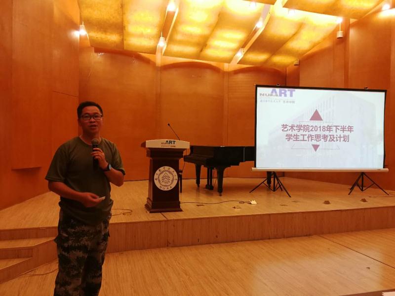 学院副书记张林从思政教育、服务校园文化、学院文化建设、学风建设、安全稳定及心理健康教育、学生创新创业、就业工作、工会工作等八个方面报告了下半年学生工作的思考及计划。