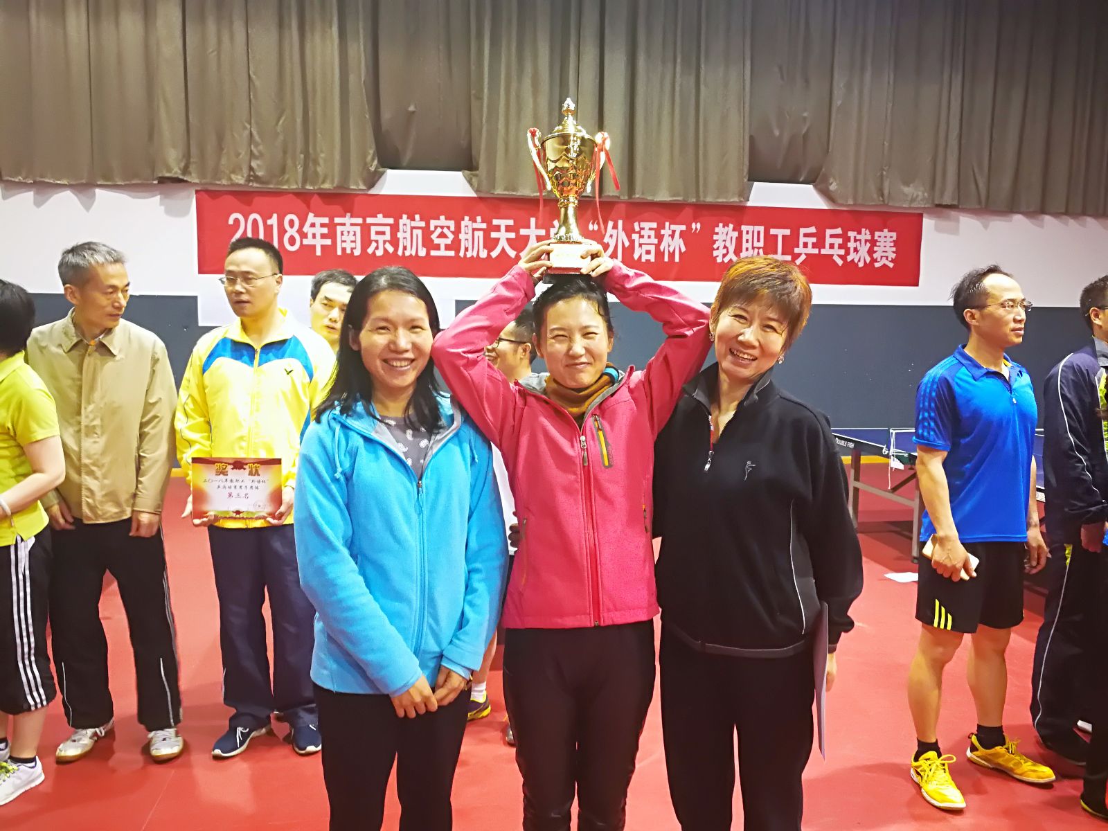 2018年4月10日下午4时30分,2018年禁忌书屋 “外语杯”教职工乒乓球赛在南航明故宫体育馆拉开帷幕,经过4天的激烈奋战,禁忌书屋 女子乒乓球代表队最终夺得冠军。