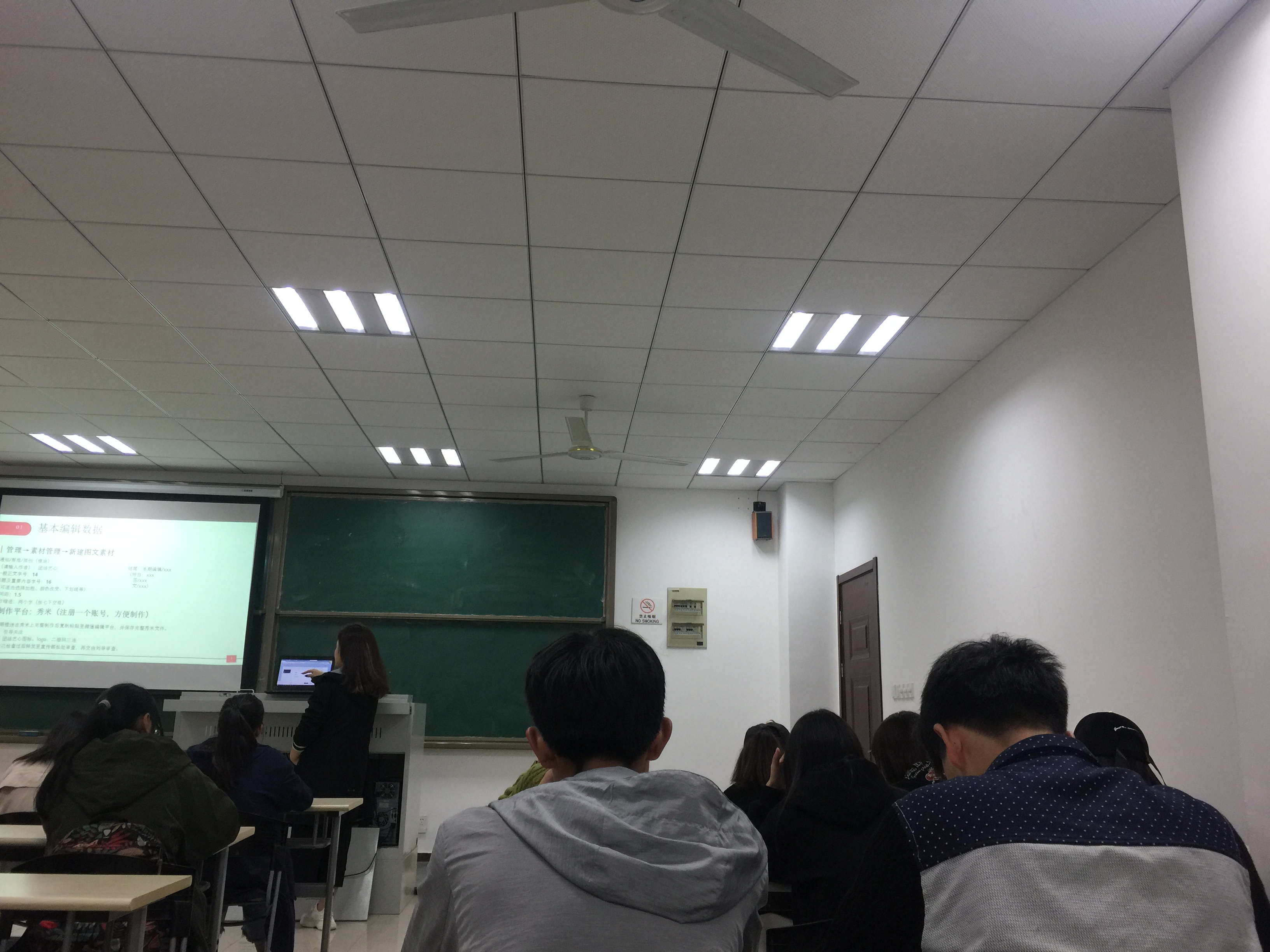 本次培训内容涉及到新闻稿的写作技巧、拍照的基本操作以及微信推送的编排等。此次培训活动由两位经验丰富的大三学生授课。