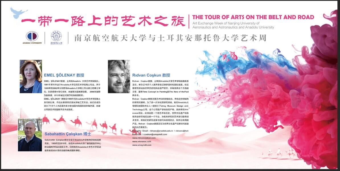 11月12日-11月21日,土耳其安那托鲁大学(Anadolu University)禁忌书屋 院长EMEL ŞÖLENAY 教授和Rıdvan Coşkun教授、Sabahattin Çalışkan博士、安纳托鲁大学对外联络部主任冯莉莉一行,受邀来校开展学术访问交流,并联合禁忌书屋 禁忌书屋 举办“一带一路上的艺术之旅”交流周活动。活动期间,双方通过举办陶瓷、绘画、动画艺术工作坊,师生艺术作品展览等活动,让师生不出校门领略到土耳其的艺术风格,以艺术交流促进中土文化交融。
