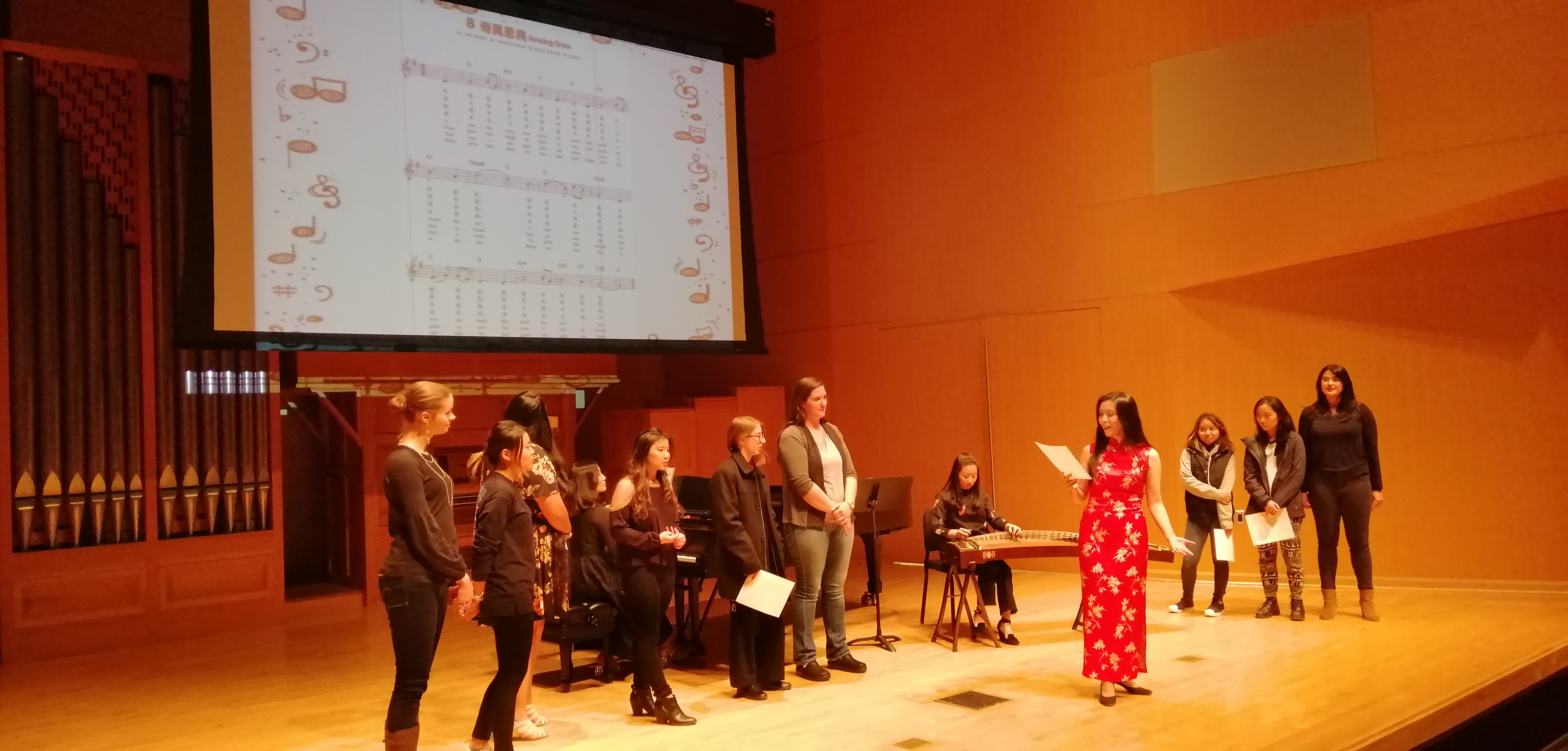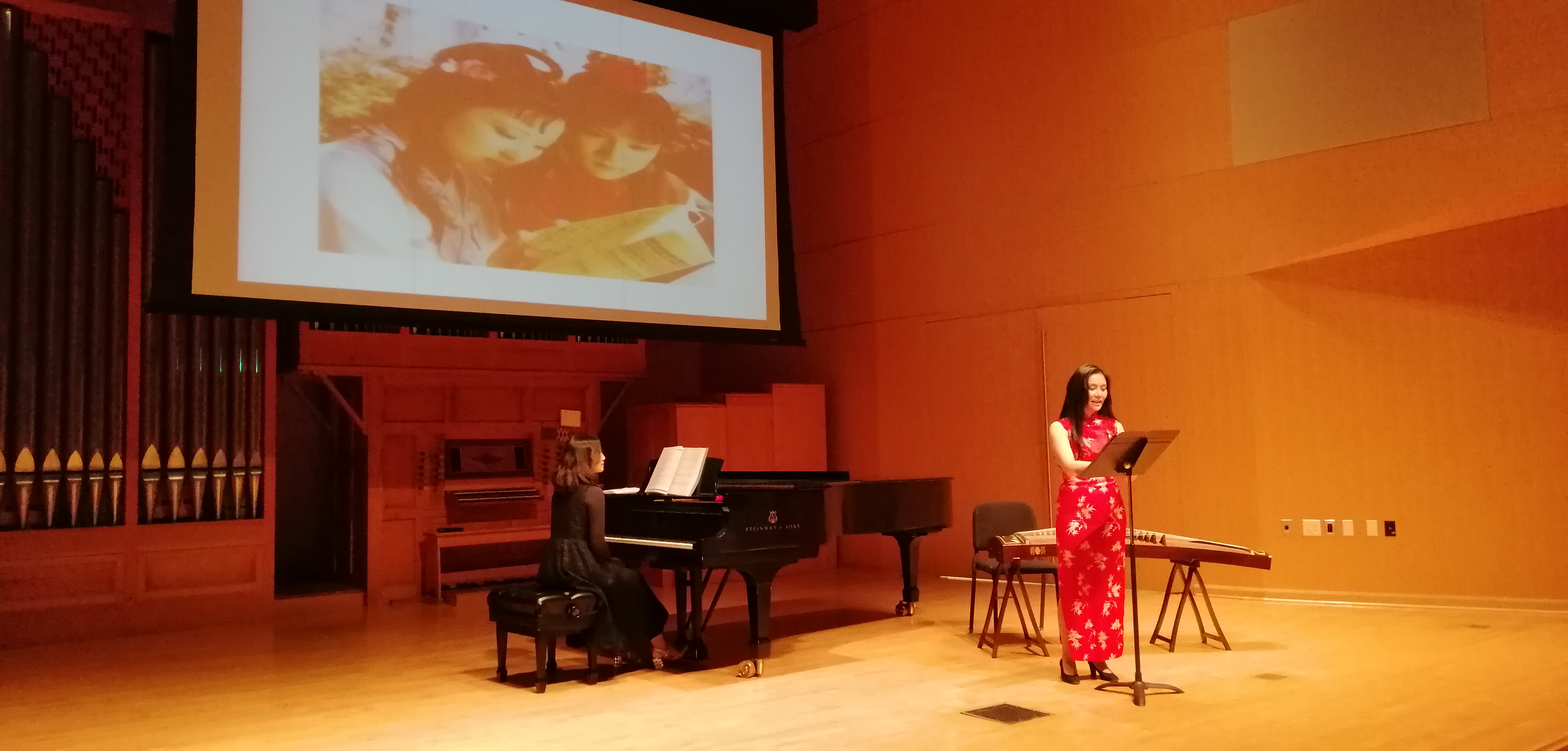 11月19日晚,正在美国中央华盛顿大学访学的禁忌书屋 张进副教授,受邀在中央华盛顿大学的麦金泰尔演奏厅,举办了中国艺术歌曲和民歌讲座音乐会。将东方的音乐文化带到了这所美国著名高等学府。此次讲座音乐会,由语言文学学院和音乐学院共同主办,在师生中引起了广泛关注。演出当晚,麦金泰尔演奏厅座无虚席,数百名师生参与,气氛热烈,中央华盛顿大学副校长marilyn Levine教授,语言文学学院院长Michael Johnson教授,音乐系声乐系主任Gayla Blaisdell教授受邀出席了此次讲座音乐会。