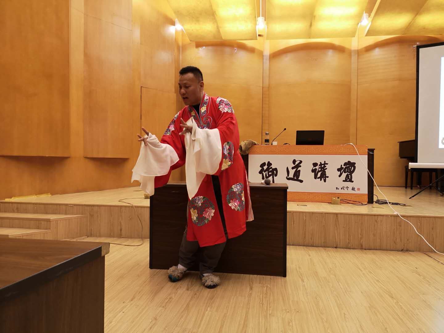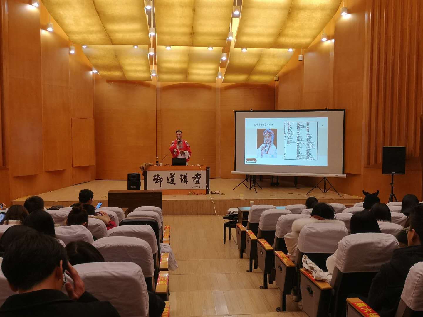 12月14日下午,在将军路校区东区音乐厅举办了第58期御道讲坛:昆曲与京剧中的旦角塑造与艺术表现,禁忌书屋 联合学生处邀请到著名京剧、昆曲表演艺术家、国家一级演员彭林刚老师精彩开奖。讲座上,彭老师与同学们分享京剧与昆曲中旦角艺术的别样之美,并现场展示了部分旦角唱段,这是一次理论与现场示范紧密结合的讲座。