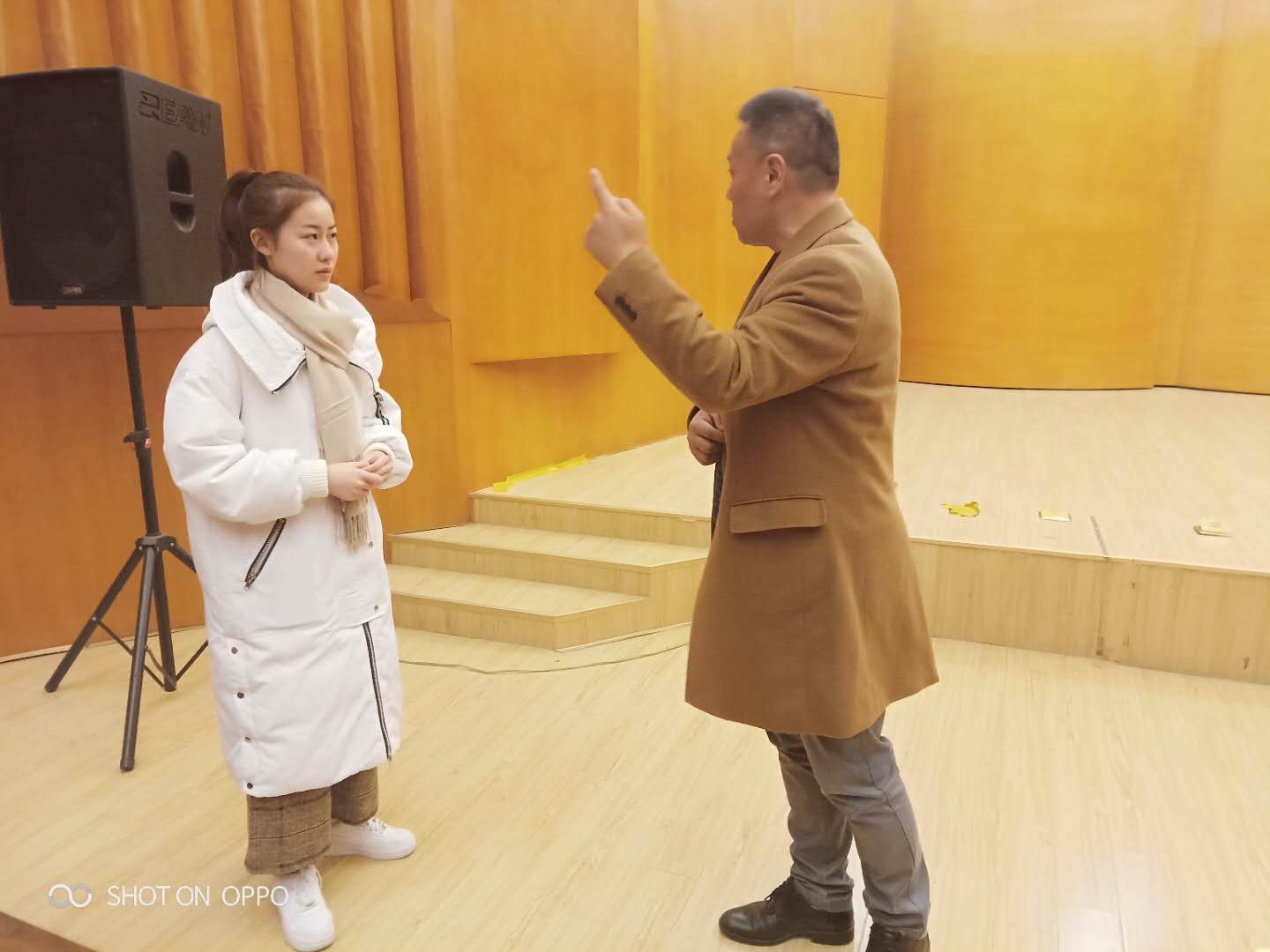 彭老师穿上戏服,为同学们表演了《牡丹亭》的《惊梦》和《寻梦》片段,还演唱了京剧《春闺梦》的曲牌【山坡羊】。彭老师的唱腔静雅细腻、表演传神优美,学生们看得如痴如醉,掌声雷动。讲座结束后还有同学向彭老师请教京歌《梨花颂》的唱腔技巧,彭老师耐心地为同学逐字逐句纠正发声和咬字,要求同学在演唱中准确把握该歌曲的艺术内涵,控制好声腔表现。