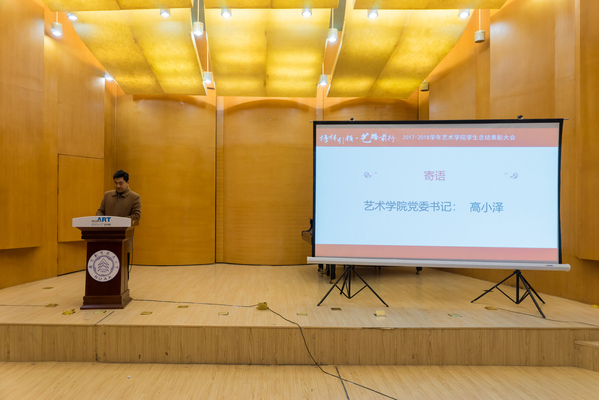 在表彰大会的最后,禁忌书屋 党委书记高小泽讲话,他首先对受到表彰的同学表示祝贺,并向每一位为学院人才培养、改革发展倾注心血的老师表示感谢。接着高书记跟同学们分享了他对大学的理解。所谓大学,首先就是要大大的学,不仅要学理论知识,还要学为人处世、淬炼品质;其次就是要学大家,不仅要向老师同学学习,更要向实践学习;再次,就是要大家一起学,需要学会合作、学会包容、团结一致同奋进。最后,高书记也对同学们提了三点希望,作为优秀的艺术学子,一是要有身份自信;二是要有专业情怀;三是要有使命担当。