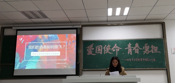 第一部分的最后,1118501班团支书曹缪贝贝为同学们阐明了“新时代·新青年”的定义。非学无以广才,非志无以成学,新时代青年,须有博学笃行的气度,慎思明辨的严谨,然后才可成功学业、成就梦想。