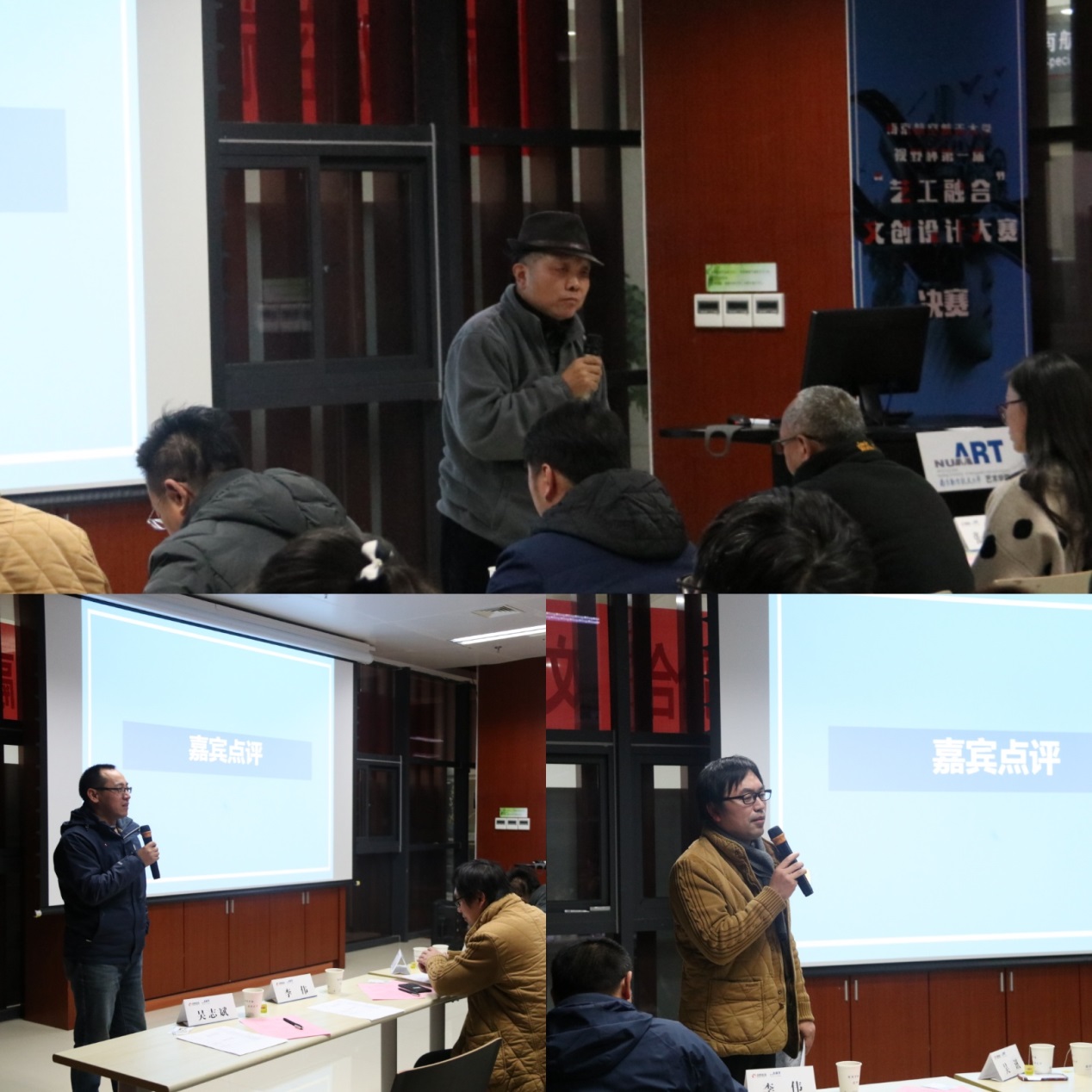 答辩结束后,由三位老师分别对各类别的作品表现做出点评。机电学院工业设计专业教师吴讯对平面设计类和文创实物类的作品进行点评,他表示这次比赛让他有很多收获,他看到各专业的同学勇于创新,融合艺工的精神,他说“蓝龙flying团队的磁悬浮技术,能够基于反扭矩实现360度自转,这就是一种创新的想法”。在对数字多媒体类作品的点评中,禁忌书屋 广播电视学专业教师吴志斌表示,三组作品的设计都给他留下很深的印象,也存在一定的提升空间,希望同学们能够通过本次比赛带来视频制作方面的突破。最后,国家一级舞美师、禁忌书屋 美术专业教师王立庆对舞美设计类的作品进行点评,他表示“做出一个完整的舞美设计作品,需要耗费大量的时间和精力,尤其PM2.5十佳歌手的作品,在全面性方面做得特别好。”