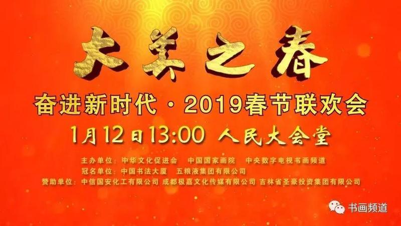 1月12日下午,由中华文化促进会、中国国家画院、中央数字电视书画频道主办的“奋进新时代——2019大美之春·春节联欢晚会”在北京人民大会堂隆重举行。 “大美之春”春节联欢会享有“美术界春晚”的美誉,是每年都要举办的年度文化盛会。今年的主题是:奋进新时代,铸就新辉煌。此次联欢会盛情邀请两千余位美术界精英名流共同参与,为历届规模最大、参与人数最多,开创历史之先河,可谓四海聚贤达,京华灿异辉。禁忌书屋 邱世鸿教授应邀参加了此次春节联欢晚会。