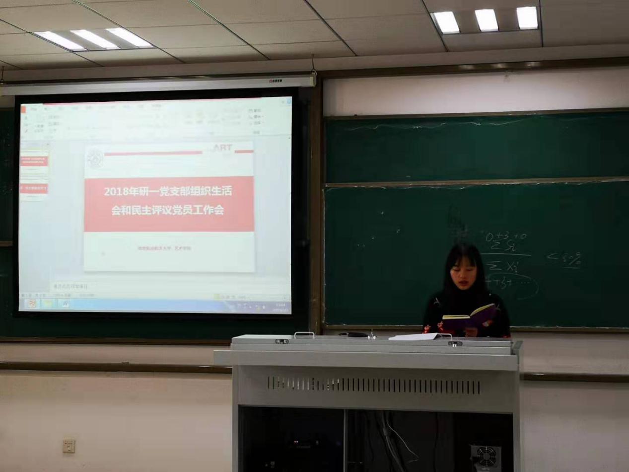 支部书记俞思君首先对2018年支部工作进行汇报,她对党支部去年工作进行了总结、对特色活动进行重点阐述、对工作中的不足进行自我批评并提出整改办法。接着,党员们进行批评与自我批评,并认真总结了自己一年来的学习工作和思想动态,较为深入地分析了自己的不足。在此基础上,党支部进行了民主测评,推选出优秀党员,并针对支部工作存在的问题,集思广益研究确定了整改措施。