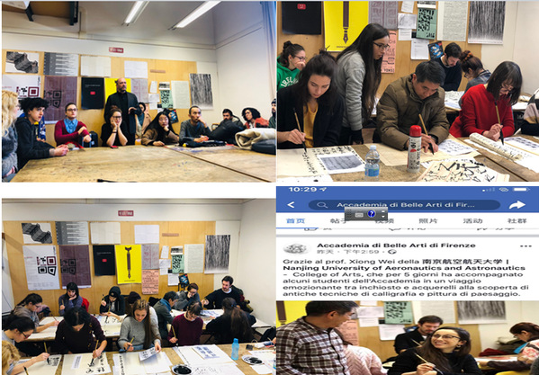 2018年12月10日,熊炜教授受邀到佛罗伦萨美术学院进行为期一周的工作坊workshop“从书法到风景画”。这也是佛美第一次邀请外籍教授开展工作坊的教学工作,网上选课的学生人数爆满,很多学生为选不到这门课而感到遗憾。