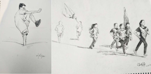 本次“南航师生画南航”活动的绘画类型分为速写、水彩、水粉,参加活动的师生依据自己的喜好,以运动会的场景为内容,将赛场同学老师矫健的身影和奋发拼搏的运动精神留在自己的画纸上,记录下这难忘的一刻。虽然很多师生是第一次接触绘画,但是有专业同学的指导,让参与的师生有了拿起画笔的自信和勇气,感受到了绘画的乐趣,并完成了一份让自己满意的绘画作品。
