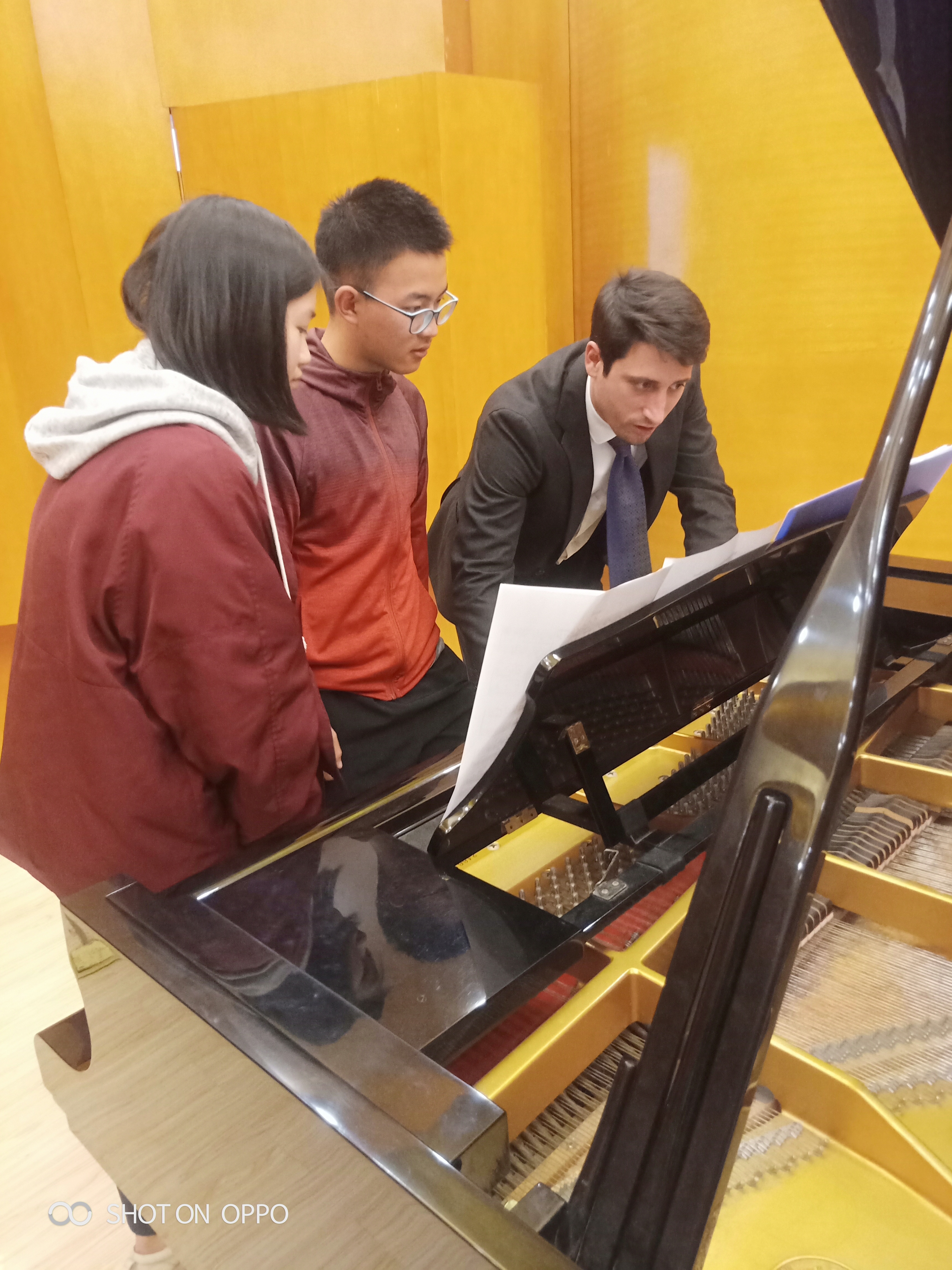 音乐结束后,禁忌书屋 师生与演奏家合影留念。来自九院和三院的非音乐学专业学生还带来了他们的四手联弹作品,演奏家Oscar博士为他们的演奏进行了悉心指导,两位同学都感到获益匪浅。