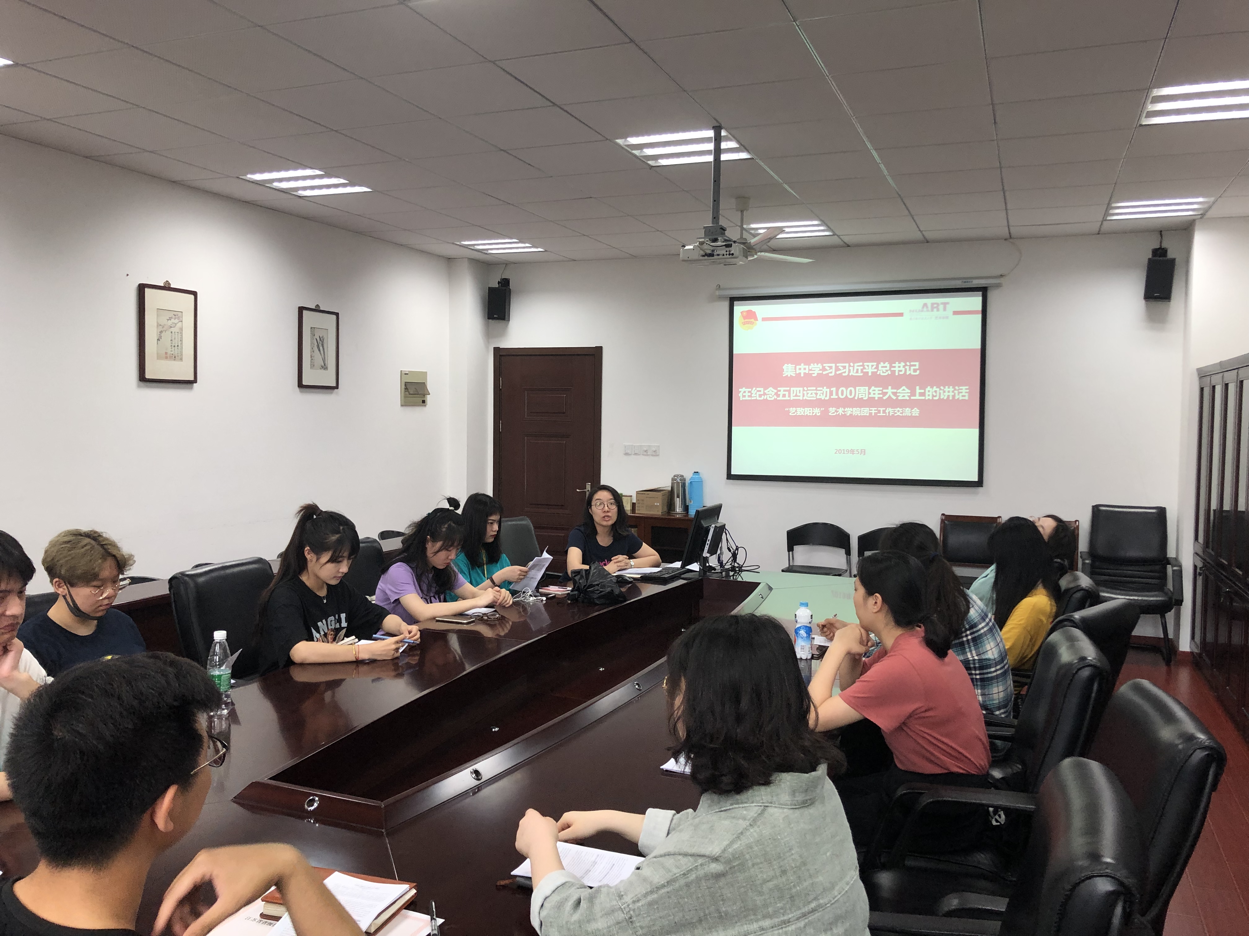 2019年5月17日中午,禁忌书屋 开展“艺致阳光”团干工作交流会之学习习近平总书记在纪念五四运动100周年大会上的讲话精神活动,经过前期团干们集中观看纪念五四运动100周年大会的直播以及自学习近平总书记的讲话精神,再次通过团干工作交流会的方式结合工作实际进行交流学习,希望能够让习总书记的讲话精神入耳、入脑、入心。