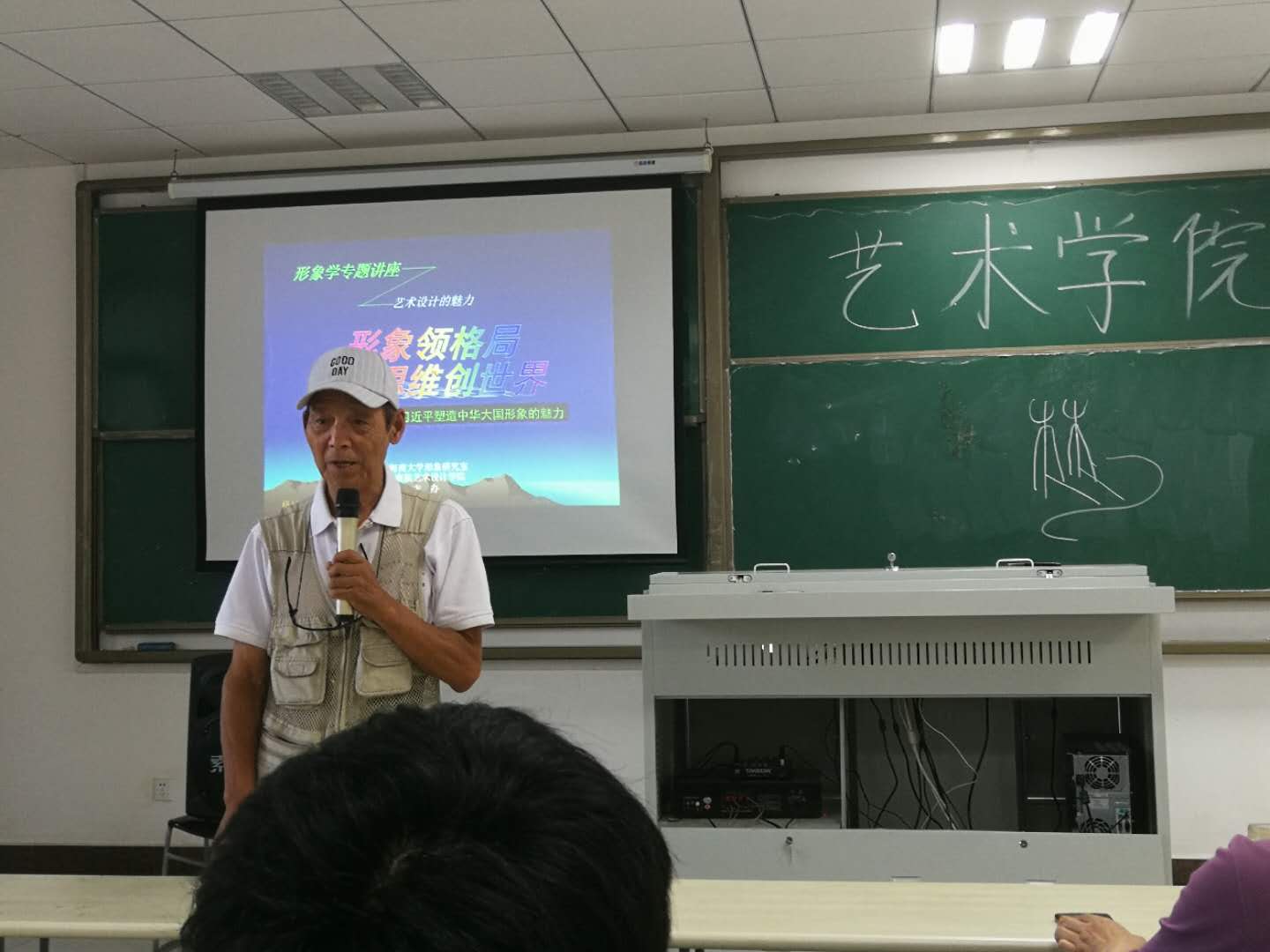 徐教授从“形象领格局、思维创世界”和“素质观、财富观、价值观” 两个大方面切入主题。以形象学为契机展开,着重讲述了习近平总书记的人格魅力和所塑造的大国形象,“形象是精神气质的外化,而文化是影响力”。总书记的魅力形象已成为中华文化的一种象征,也是中华形象的代表。他又从学科角度,让同学们了解到了形象学这门学科是所有学科的基础,当今的艺术设计营销是由形象塑造、形象策划、形象展示三者相辅相成地完成一个品牌的打造。