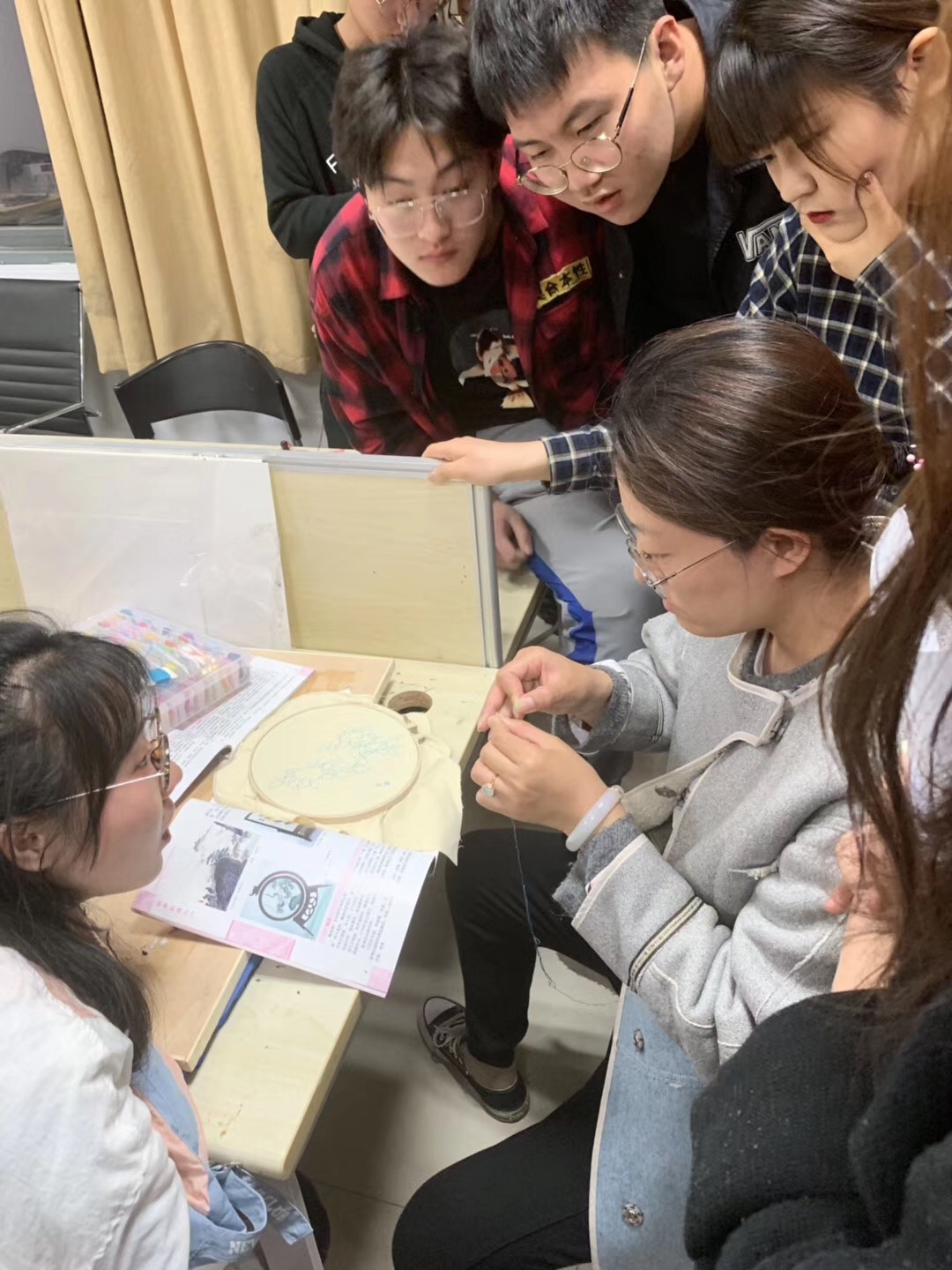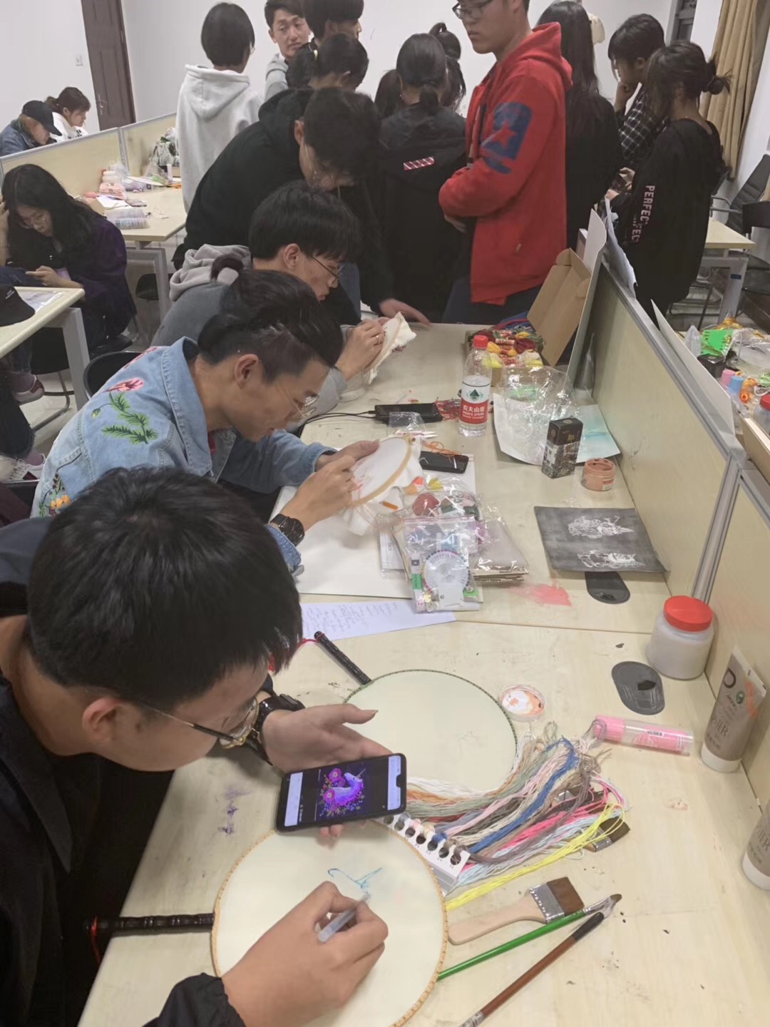 刺绣是中国优秀的民族传统工艺之一,在中国至少有两三千年历史。手工刺绣的主要艺术特点是图案工整绢秀,色彩清新高雅,针法丰富,雅艳相宜,绣工精巧细腻绝伦。2019年6月19日,《图案》课程刺绣结课展在南航禁忌书屋 一楼大厅举行,吸引了众多老师和同学们前来观看,获得一致好评。王雯婷老师表示,本次教学,学生热情度和参与度很高,过程圆满,内容丰富,硕果累累。