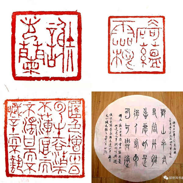 7月盛夏,应《书法报》网络教学融媒体平台邀请,禁忌书屋 邱世鸿教授录制拍摄了《中山王篆书教学》与《篆刻艺术教学》两门教学视频,并上传至名家网络教学。每门教学学时长达五小时,分10次播出。其中,篆书教学在南通拍摄,篆刻教学在武汉拍摄。