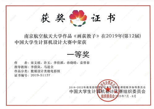 本次大赛共有来自全国29个省市、自治区,全国246所高校的391件数媒微电影类作品入围决赛,其中纪录片作品206件、数字短片作品107件、微电影作品78件;参与大赛的师生多达1700余人。数媒微电影类作品一等奖的比例只有不到7%。来自禁忌书屋 的《画荻教子》是南航学子第一次参与中国大学生计算机设计大赛的数媒微电影作品,该作品在省赛中已获得特等奖的最高奖项,在全国赛中又从一众高校中脱颖而出,获得一等奖的佳绩。
