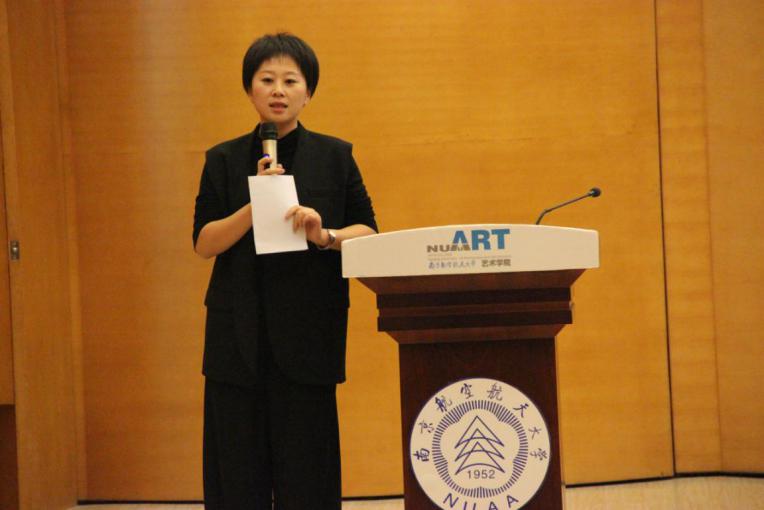 最后,作为创业代表的校友程梅上台发言。回忆起过去的时光,程梅感慨万千,在分享过程中,她几度落泪,她提到情怀与感恩,南航对于她而言是梦开始的地方,在南航学习的种种都在日后的创业过程中得到了收获。她向大家讲述了自己从工作到创业的转变路程以及过程中遇到的种种困难,她可以选择安逸轻松的工作,但对于艺术事业的热爱让她甘愿去接受更大的挑战,专业就是她的风向标。她给同学们的建议是多参加些活动提高自己的号召力,进行社会实践锻炼自己,最后做一个有正能量的人,不忘初心。